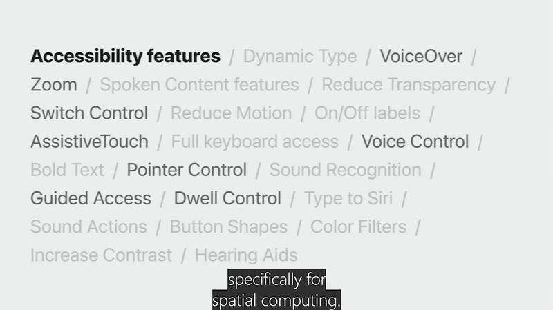 ▲高亮的部分,是苹果专为空间计算重新设计的辅助技术