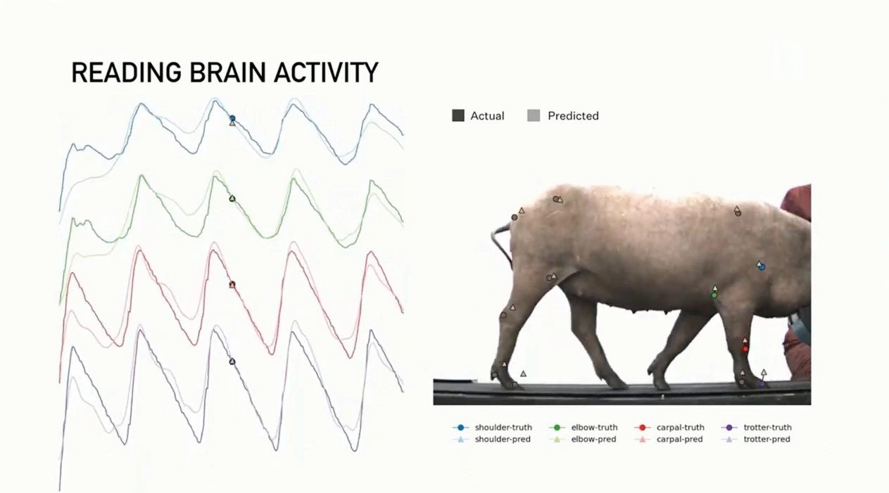马斯克随后把话题转回到Gertrude,并展示了一个显示器。当Link检测到Gertrude在用鼻子搜寻食物并接触到什么的时候,显示器就会播放声音并显示波段尖峰。